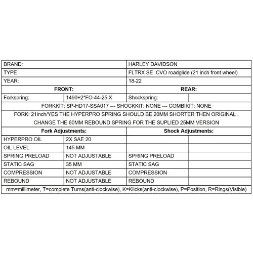 Info: Only fits the original fork of the "Harley Davidson FLTRX SE CVO roadglide (2018-2022)" with 21-inch front wheel.