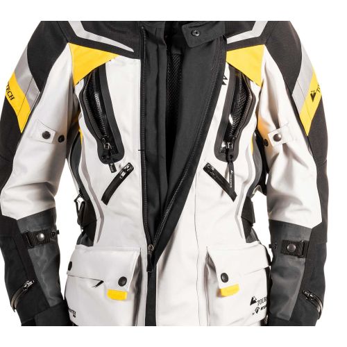 Moto kombinéza Touratech Compañero ULTIMATE je určena pro všechny podmínky a roční období. Ať už jedete přes průsmyky, zasněženou horskou krajinou nebo cestujete po euroasijských stepích v horkých letních dnech, všestranné vrstvy umožňují individuální přizpůsobení různým teplotám. Tento oblek je pravděpodobně nejvzdušnější ze všech motocyklových laminátových obleků a nabízí vždy optimální pohodlí a ochranu pro nezapomenutelné výlety, bez ohledu na to, kdy a kde.