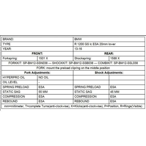 Replacement springs Height lowering kit -20mm, for BMW R1200GS(LC) 2013-2016 "Original shocks with BMW Dynamic ESA"