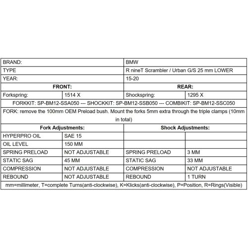 BLACK-T lowering kit -25mm for BMW R NineT SCRAMBLER / URBAN G/S 2016 - 2020