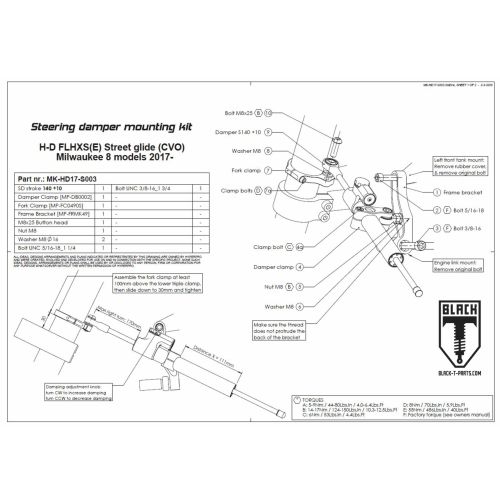 Black-T Steering Damper CSC for Harley Davidson FLHXS (E) 2017-2023 incl. installation kit