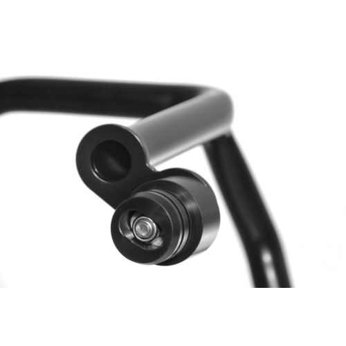 A "cage" of 25-mm strong, 2-mm thick stainless steel tubes completely encloses the cylinders. Any forces that occur are safely deflected and distributed to gently break them down. Numerous assembly points, intended bending points and the central strut guarantee safe protection not only of the cylinders, but also of the frame and engine of your R1200GS.